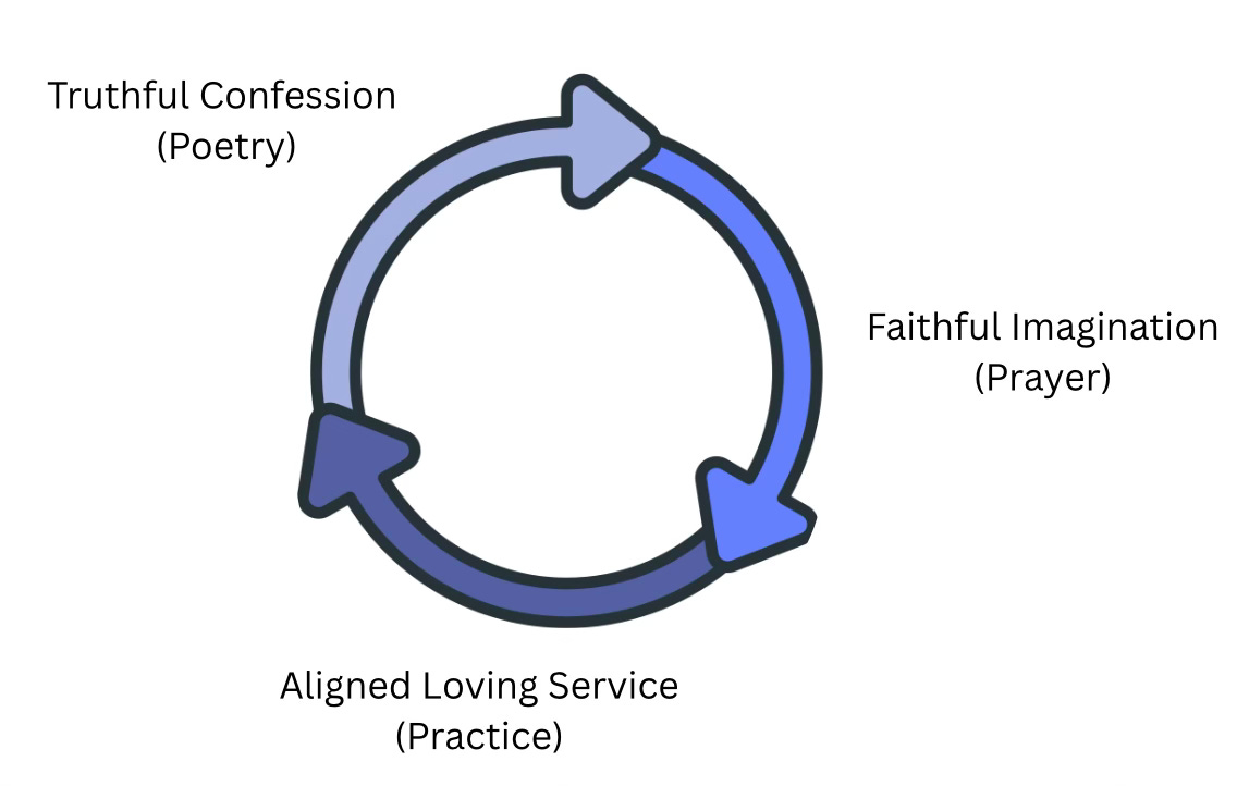My life has always been about more than poetry, even when I didn’t know it. The poems are prayers, the prayers are a practice, the practice is a poem lived out loud. Through truthful observation and visceral testimony, poetry helps us faithfully image the realities all around us. Prayer then helps us reimagine those systems in alignment with God’s beautiful vision for God’s creation. Social practice then helps us re-image God within our neighbors and God’s character within our neighborhoods.